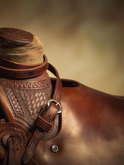 The saddle horn exists for a practical purpose to anchor a lariat when roping cattle, and there are various strings and rings to allow the cowboy to attach all of his gear. Saddles have evolved to support specific disciplines; a barrel racing saddle would be quite different from an equitation saddle while still being easily recognisable as a western saddle.